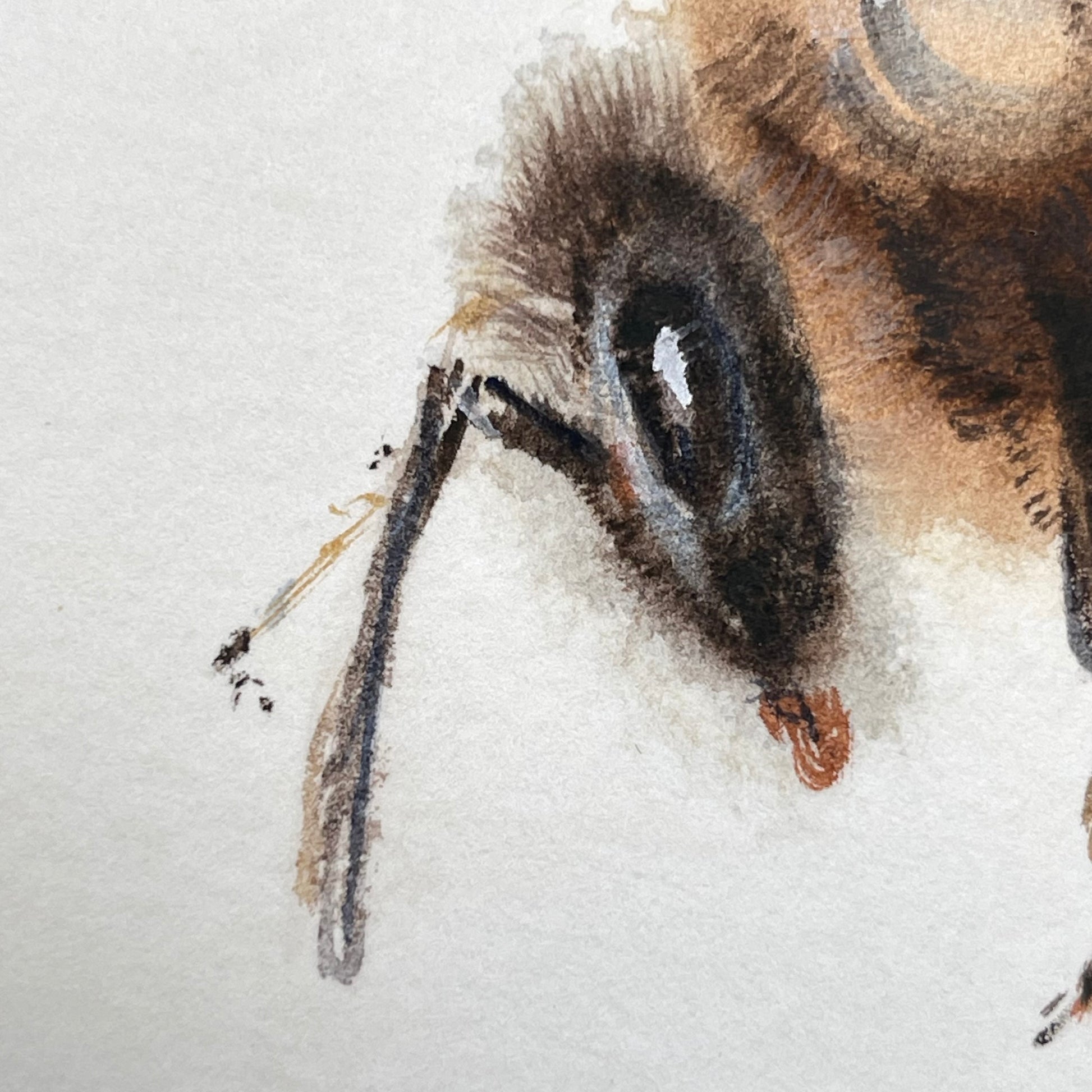 Bee N5 is a delicate study of a bee created using the wet-on-wet watercolor technique. This approach allows the paint to flow unpredictably, creating subtle textures and unexpected colour blends that bring the bee to life.