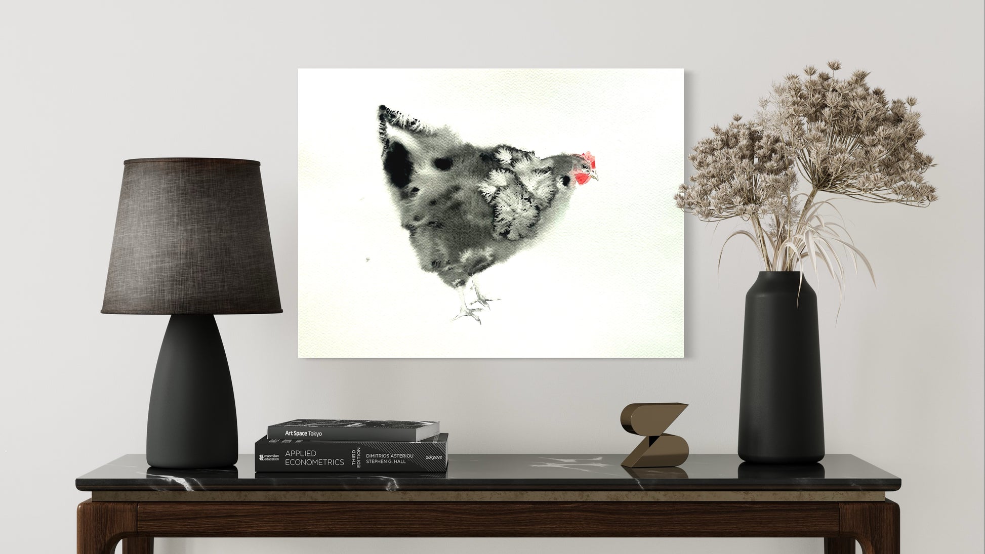 Chicken No. 1 is one of my favourite subjects to paint in watercolour. This piece is created using a combination of ink and watercolour on wet paper, which allows the colours to blend softly and the forms to emerge naturally. The technique captures the gentle movement, subtle textures, and quiet charm of the chicken, highlighting both its personality and presence.