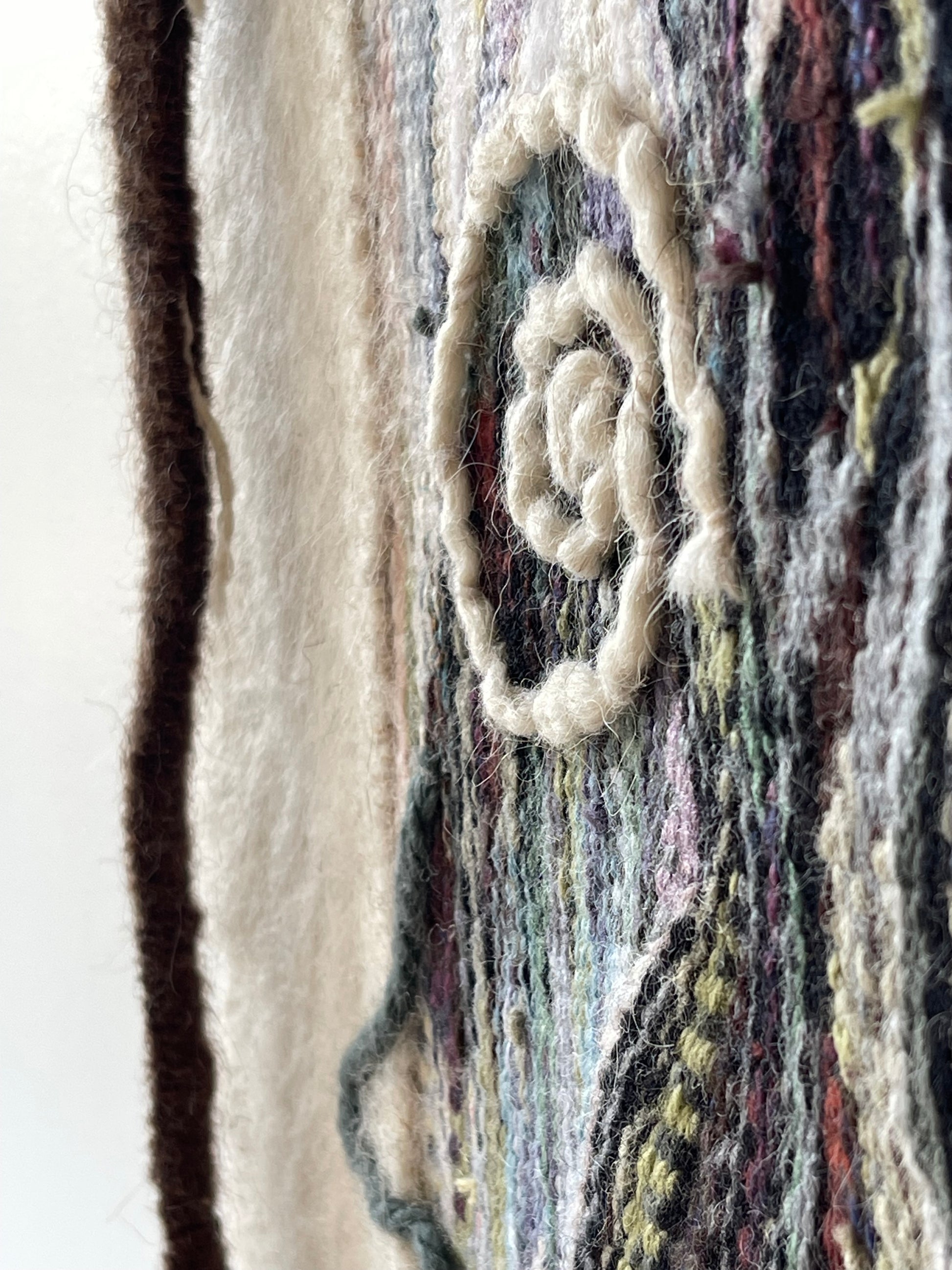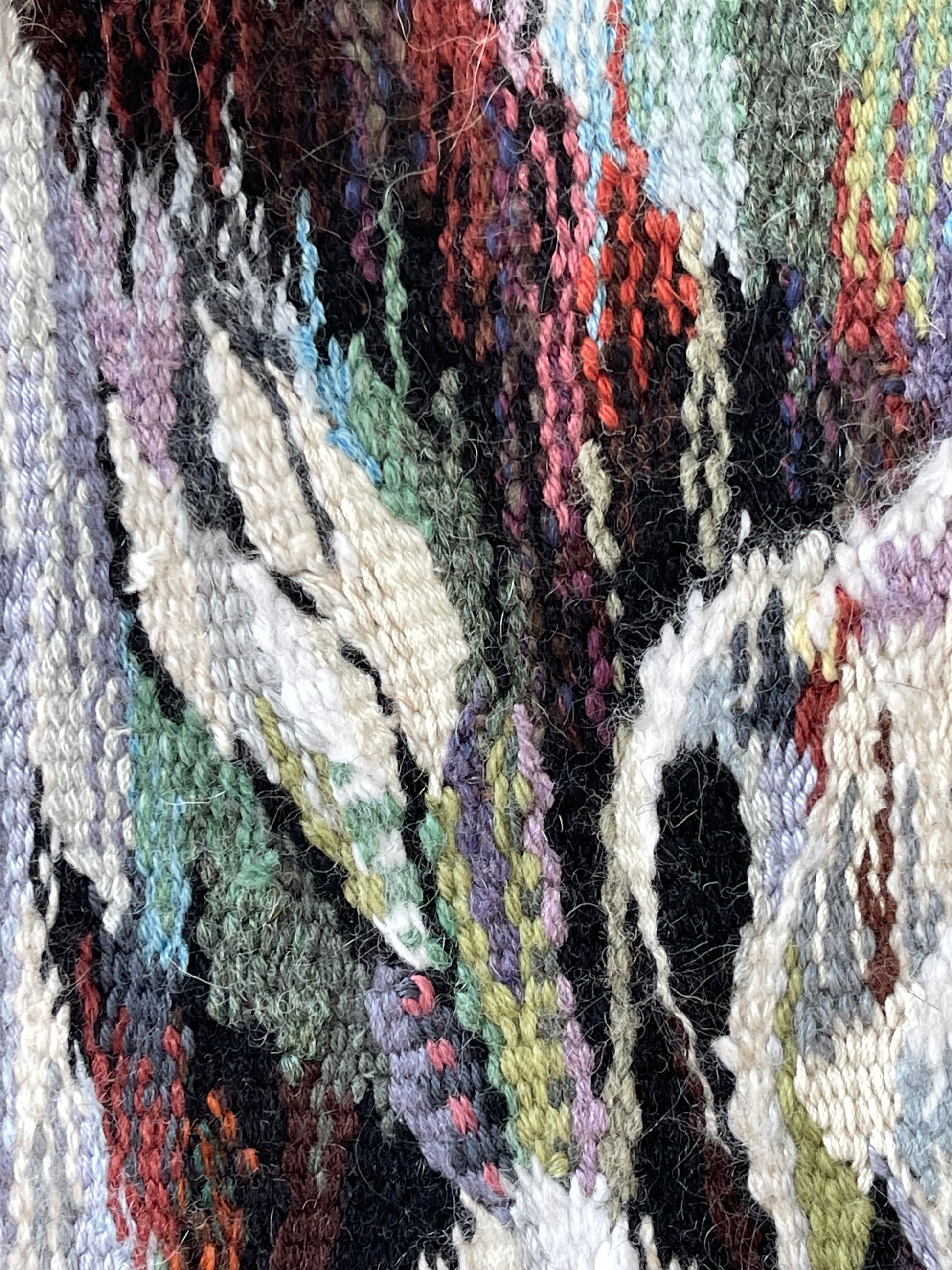 Flower of Fantasy embodies the beauty of vibrant flowers, blending traditional weaving techniques with experimental approaches. This collage tapestry plays with contrasts and subtle nuances, combining diverse textures and layering threads of different thicknesses and qualities. The piece is a celebration of experimentation, imagination, and the wonder of flowers.
