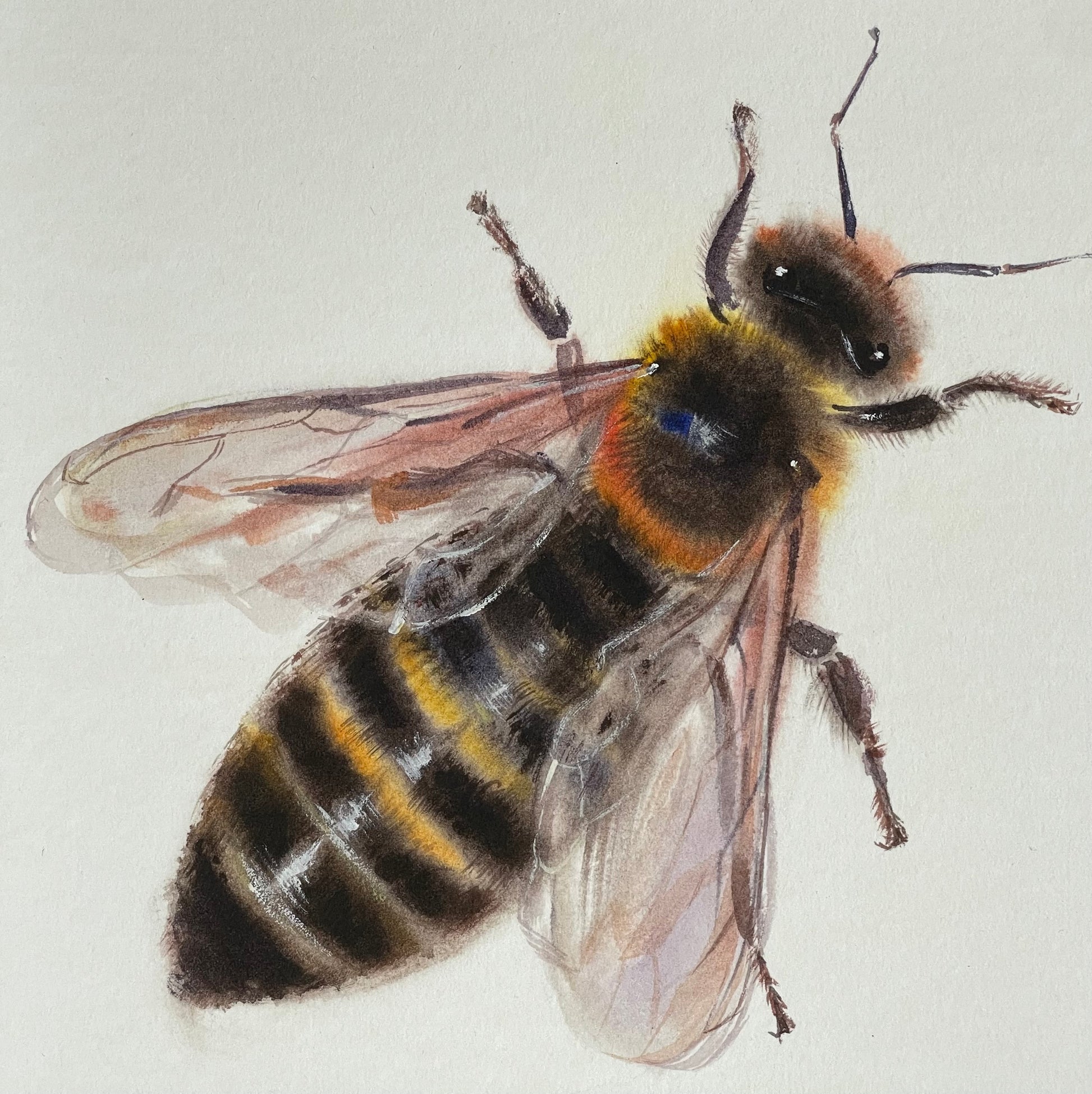 Golden Nectar is a watercolour painting that brings attention to the quiet world of the honeybee. Painted using the wet-on-wet technique, soft washes flow gently across the surface, creating subtle transitions that echo the movement and lightness of this small creature.