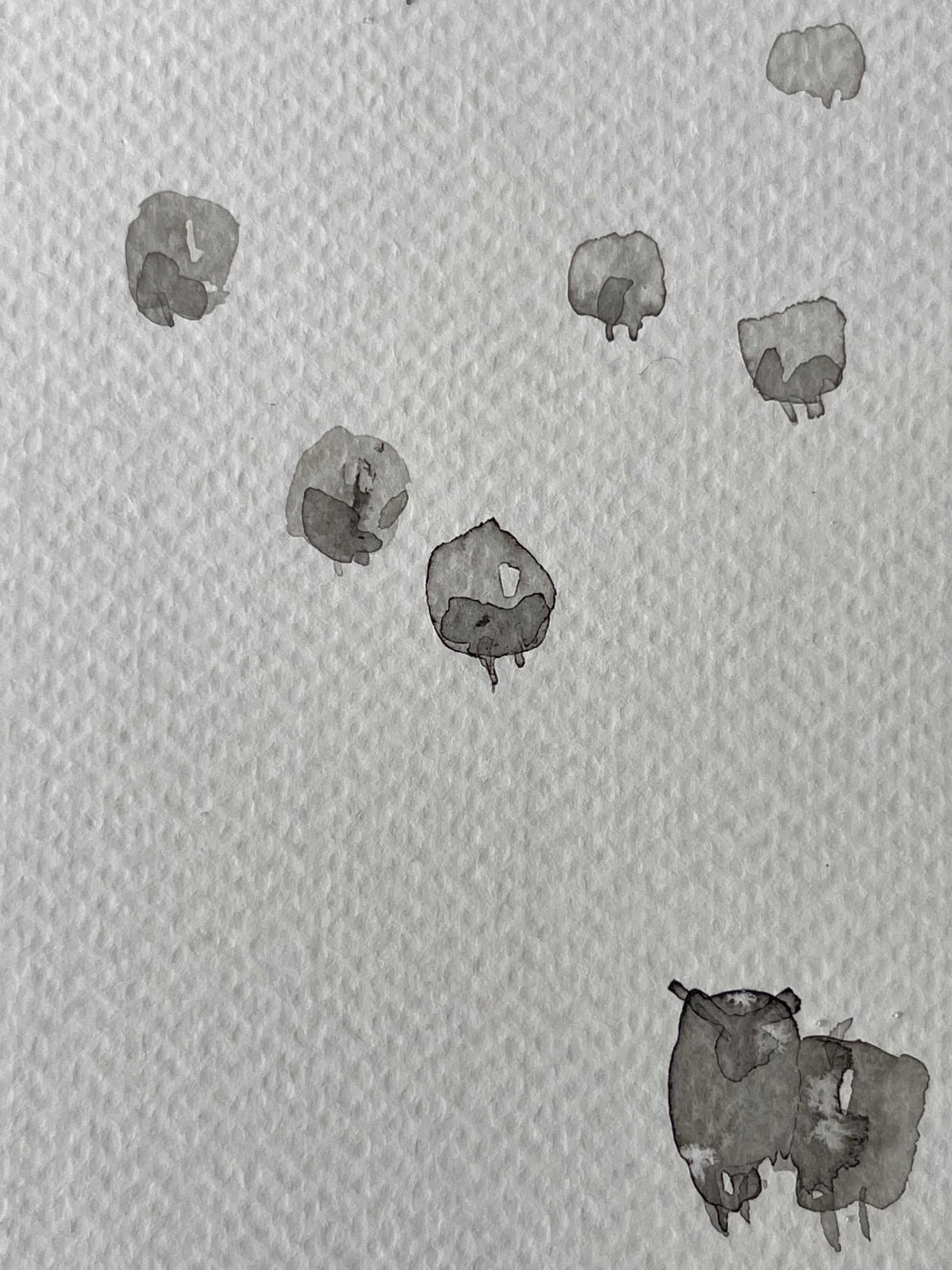Crafted with delicate watercolors and ink on paper, this small painting captures the essence of the animal in a classic, figurative style reminiscent of folk illustrations. The artwork celebrates nature.