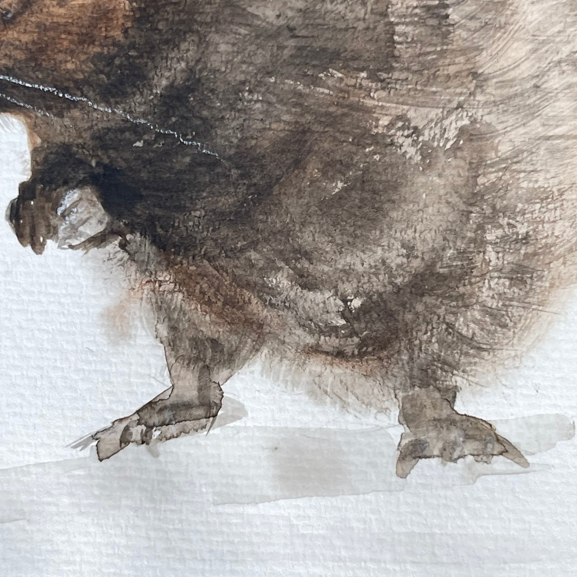 The Rat of Prosperity depicts a curious rat painted in soft, fluid watercolour strokes. Its lively posture, delicate whiskers, and textured fur create a sense of motion and character, inviting a gentle look at an animal often overlooked. Subtle tonal transitions bring lightness and personality to the scene, showing the rat in a thoughtful, expressive way.